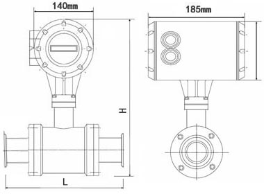 四、卫生型电磁流量计外形尺寸图:
