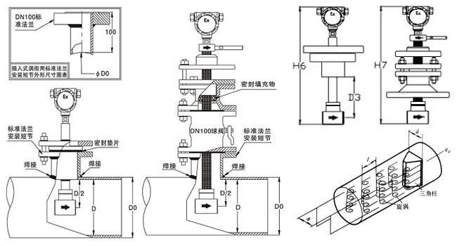 五、蒸汽涡街流量计安装示意图及注意事项: