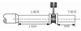 | 3.弯管的安装:如果流量计的前端有90°弯头或T型接头,要保证流量计的前直管段15米,后直管段5米 | ![]() | |||||||||||