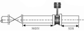 | 4.同一平面两个弯管的安装如果流量计的前端有两个90°;弯头,要保证流量计的前直管段20米,后直管段5米 | ![]() | |||||||||||
