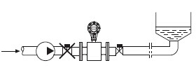 | 3.管道走向往下应将往下的管道低于仪表5米以上,并在流量计下游安装排气阀 | ![]() | |||||||||||