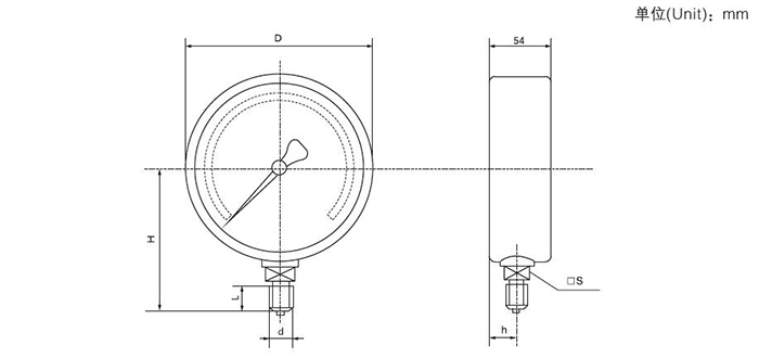 5.膜盒压力表外形尺寸: